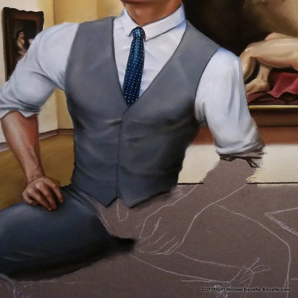 /I'm all for letting it all hang out, but it's also nice to be all buttoned up! While there are different challenges between painting the clothed and unclothed, usually the biggest one is deciding on the outfit, picking the style and colors. For myself, I just like what I like, and am not up on the current fashion rules (are skinny ties in? are vests frowned upon? where are we regarding socks?). So for paintings, I'll gauge what's on TV and the internet, and try to opt for something that seems classic and not trendy.