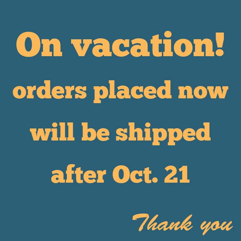 I thought the little notice bar across the top of the page might be easily overlooked. Just want everyone to know that I will be away and I will ship any order placed now through the 21st after I return.